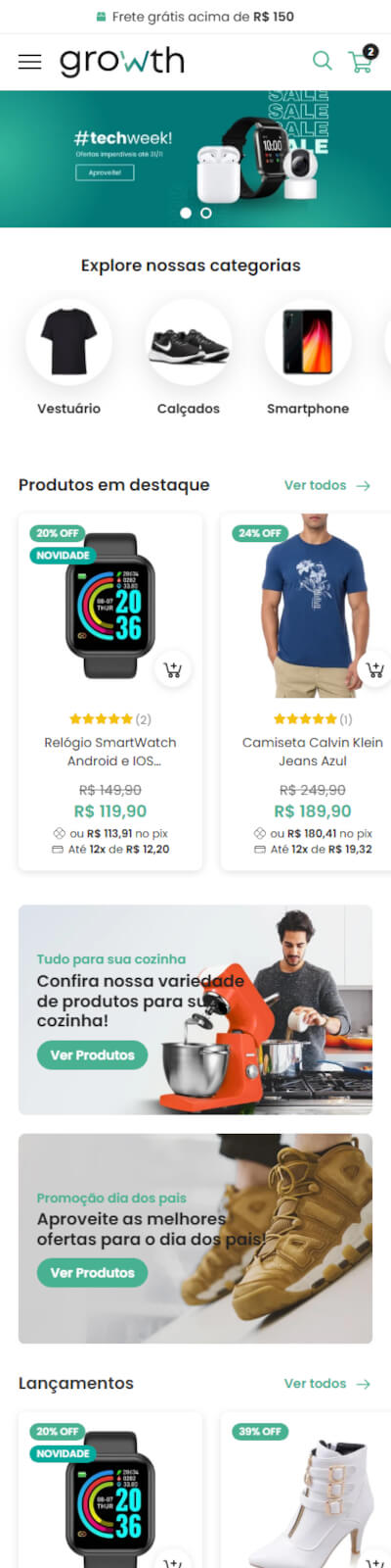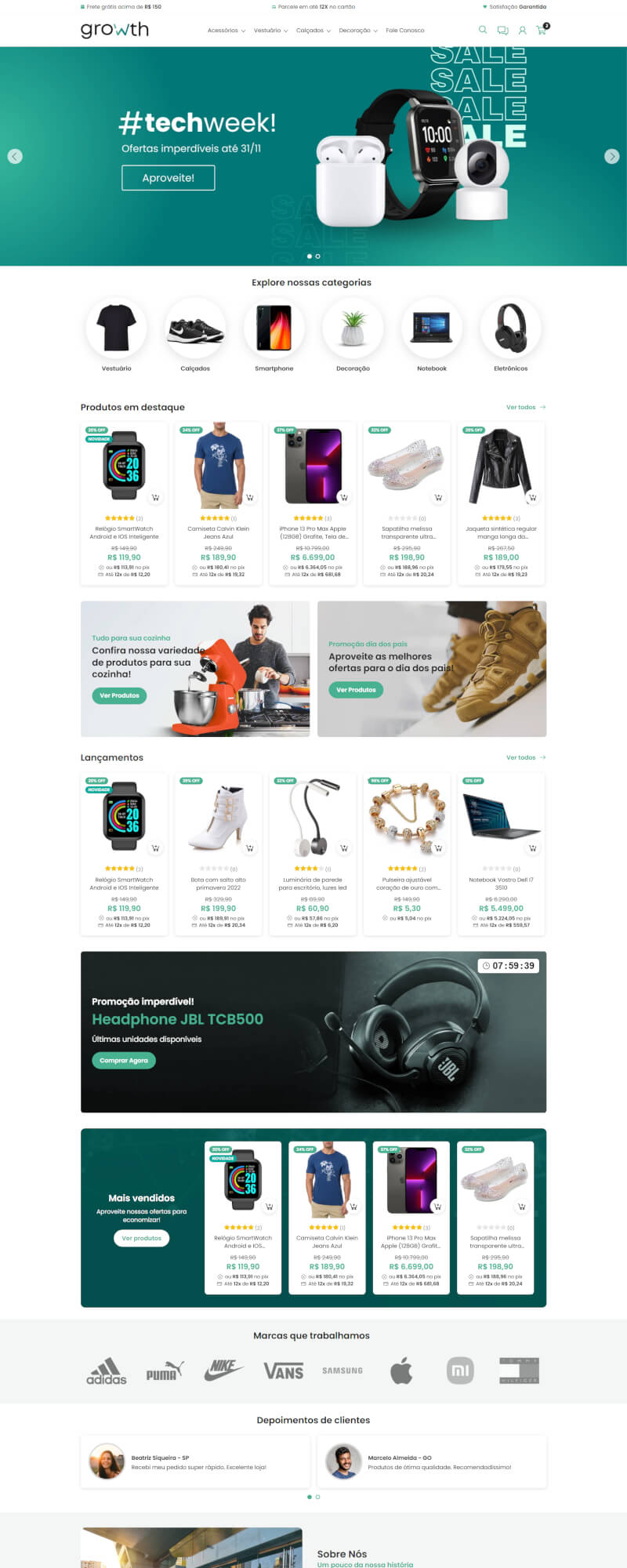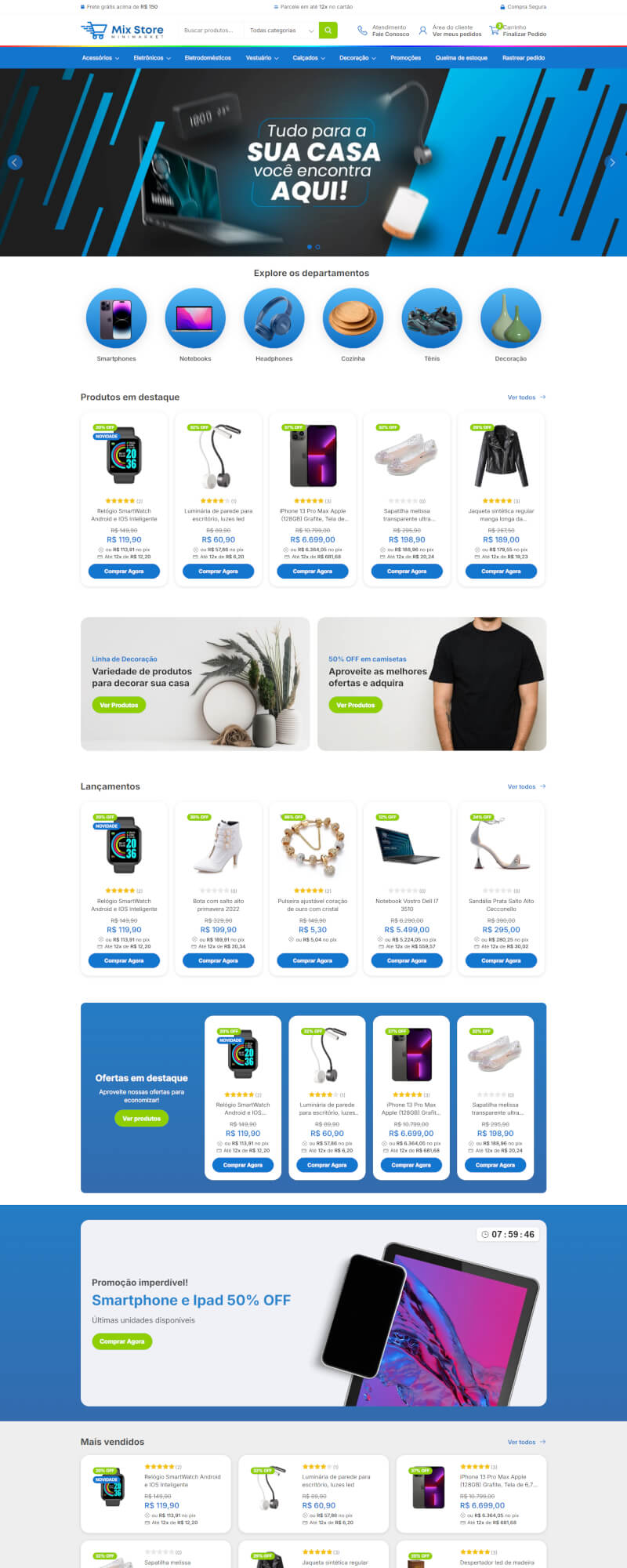 Você pode escolher a melhor abordagem para vender: utilizando a Loja Virtual para apresentar todo o mix de produtos, focando sua estratégia nas Landing Pages modernas ou mesclando as duas estratégias para vender ainda mais!