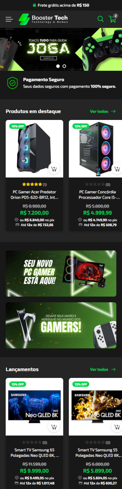 Crie uma Loja Virtual com praticidade e integre com Landing Pages personalizadas com gatilhos de venda e checkout transparente de alta conversão.